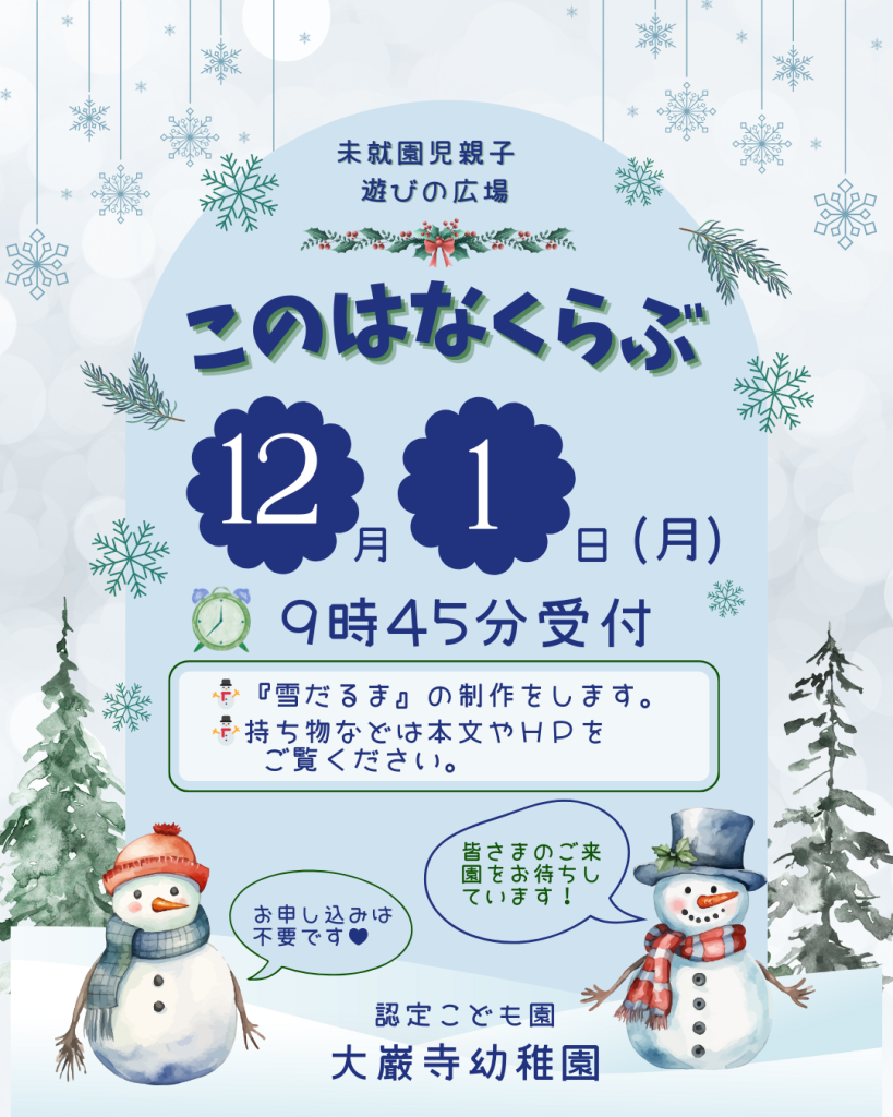 ⛄12月1日 このはなくらぶのお知らせ⛄