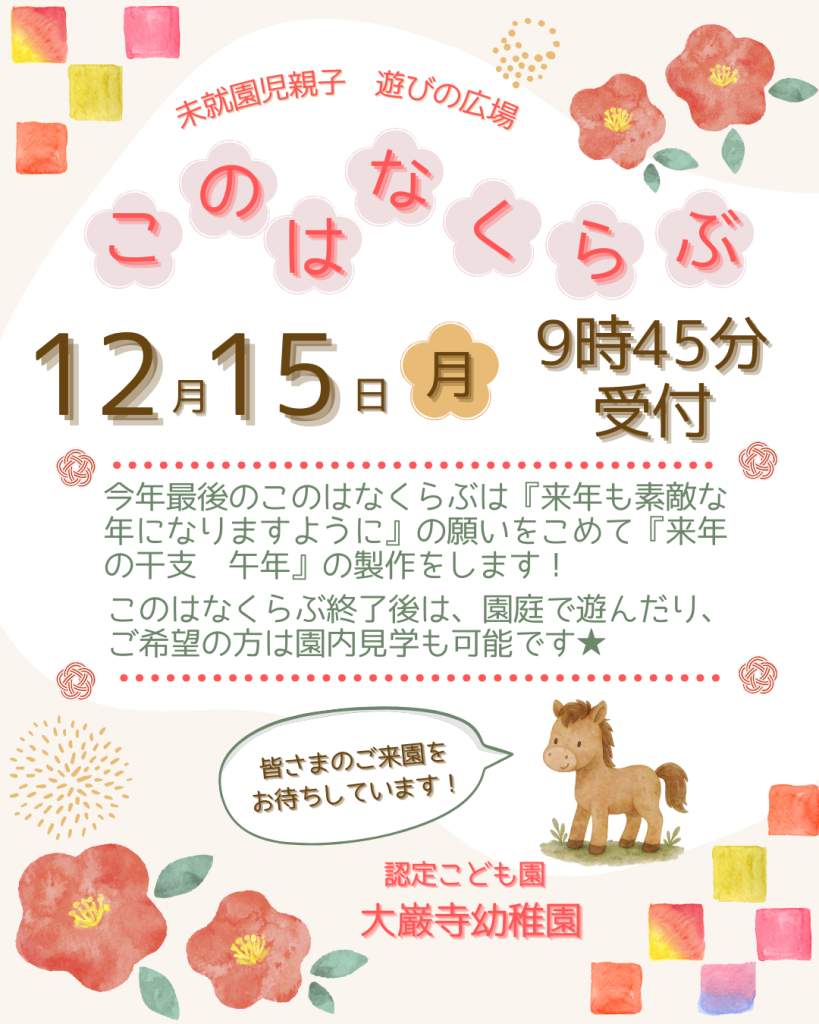 🐎12月15日 このはなくらぶのお知らせ🐎